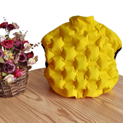 Dette vest bruger en unik ikke-flowing luftfyldning som isoleringsmateriale med en oppustelig ventil bygget inde. Brugere kan oppustes vesten manuelt via mund, der blæser eller bruger en pumpe, justerer luftvolumen for at tilpasse varmen baseret på lokale temperaturforhold. Den oppustede luft skaber et blødt, men alligevel elastisk termisk lag, der effektivt blokerer for kold vind og fugt, hvilket forhindrer varmetab.
